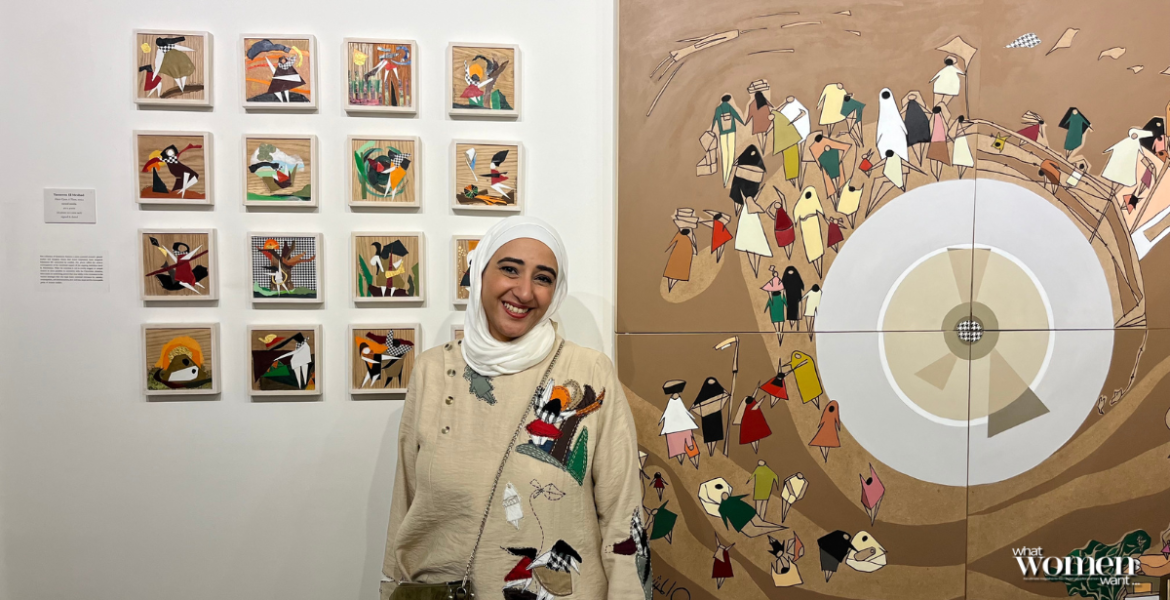 When you walk into Safar Khan, you are met with Tasneem El Meshad’s inner most thoughts and feeling in her newest exhibition, Becoming. This collection offers an intimate and candid look into her lived and shared experiences. Her visual language is bold, original, and emotional. Tasneem crafts a captivating interplay between two- and three-dimensional elements, intertwining geometric precision with organic fluidity. Her unique approach showcases her technical skill. Also, it mirrors her multifaceted identity—as a woman, artist, daughter, mother, and most importantly, as an individual.